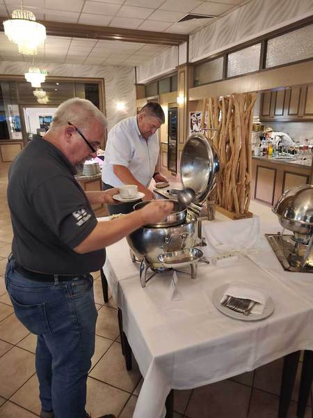 Es erwartete uns ein reichhaltiges Buffet mit u.a. Minischäufele, Lende mit Pfifferlingen, Schnitzel, Klöße, Pommes, Salate, saure Zipfel und mehr.